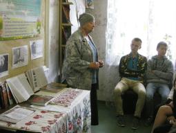 На захід завітала Лариса Федорівна Кравченко, член Національної спілки майстрів народного мистецтва України та співробітник Криворізького історико-краєзнавчого музею. Пані Лариса розповіла юнацтву, що таке сім'я, рід, родина, родовід, родинні традиції, про цінність всього того, що пов'язує їх із сім'єю, родиною та батьківською хатою.