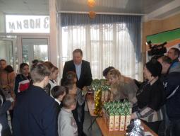 Зі святом присутніх у залі привітали голова Довгинцівської районної в місті ради Колесник Ігор Вікторович та координатор фонду «Українська перспектива» у Довгинцівському районі Хватова Світлана Володимирівна. 450 дітей – учасників свята отримали солодкі подарунки від фонду «Українська перспектива».