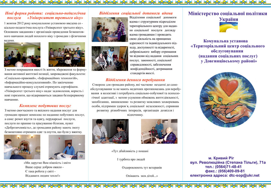 Бунєва Т.П. директор КУ «Територіальний центр соціального обслуговування (надання соціальних послуг) у Довгинцівському районі», депутат районної в місті ради ознайомила колег з новими формами роботи та послугами, які надає територіальний центр мешканцям району. Депутатам було надано інформаційні брошури про роботу комунальної установи.