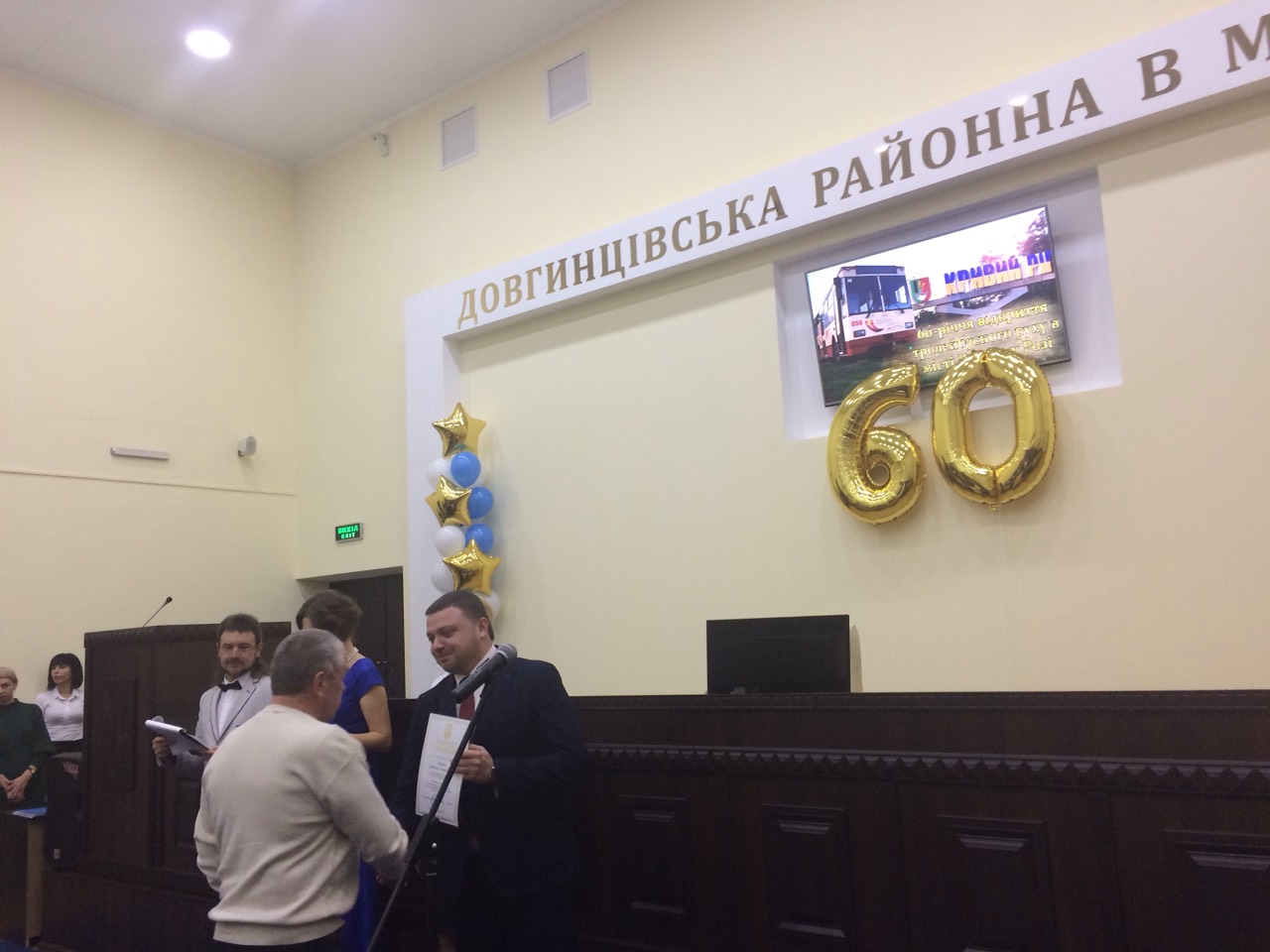 15.12.2017 у сесійній залі виконкому Довгинцівської районної в місті ради відбулись міські урочистості з нагоди 60-річчя початку тролейбусного руху у місті Кривому Розі.