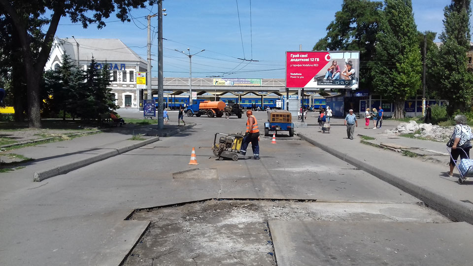 Проводиться ямковий ремонт дороги, по вул. Серафимовича та привокзальної площі.