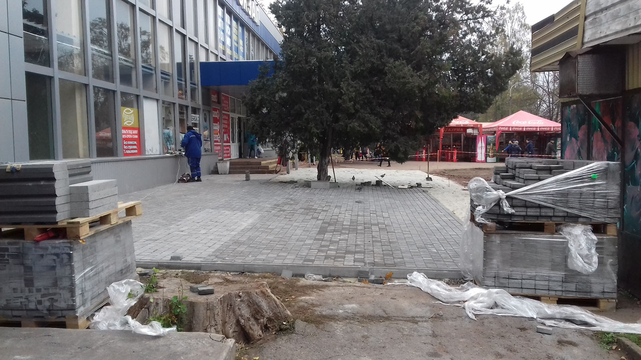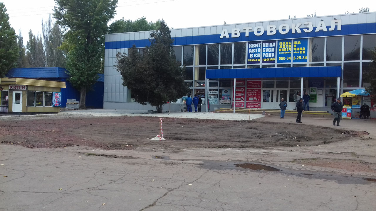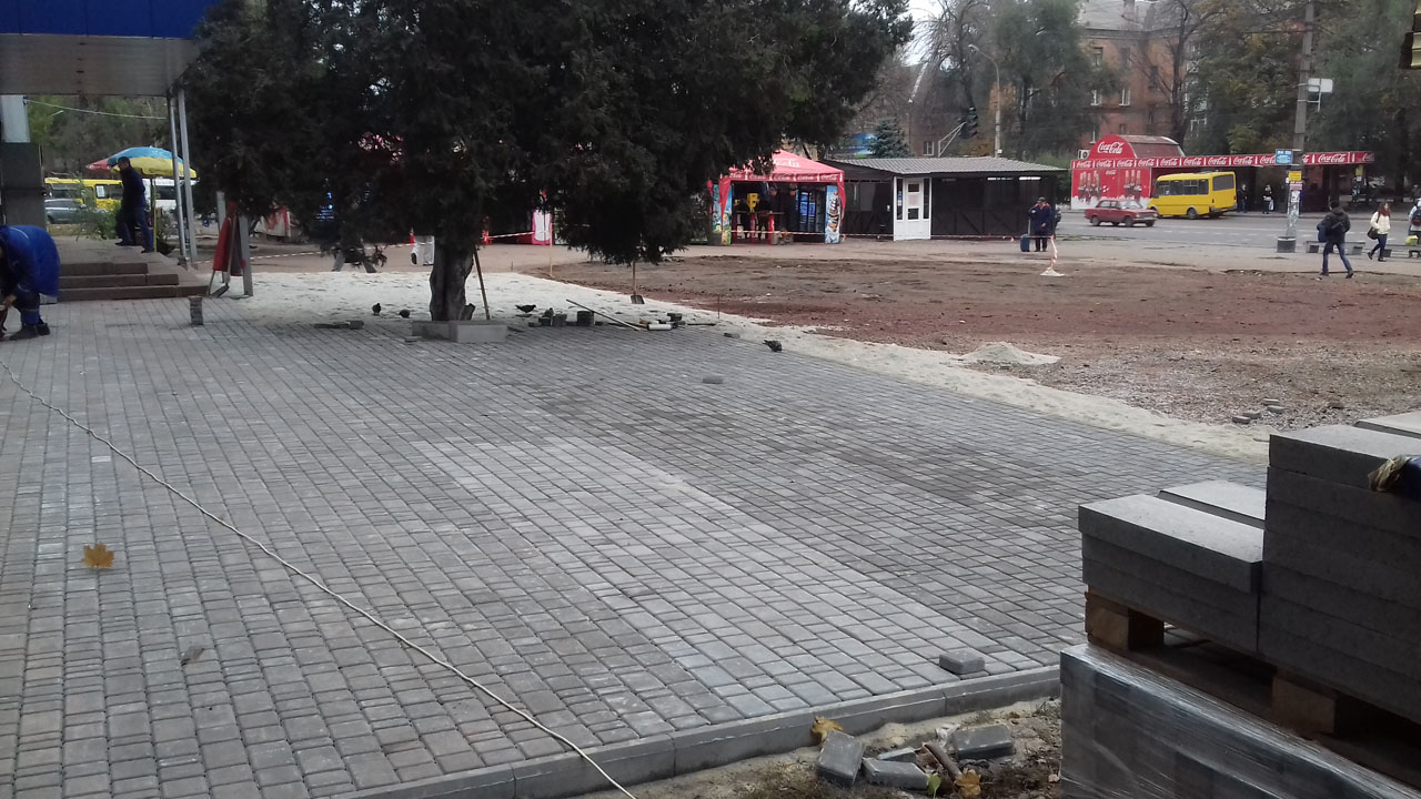 ПрАТ «ДОПАС» виконуються роботи з реконструкції привокзальної площі Криворізької автостанції № 1, виконано роботи щодо зняття пошкодженого асфальтного покриття та розпочато вимощування території тротуарною плиткою.