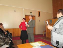Голова Криворізької міської ради ветеранів Дабіжа М.К. доповів присутнім про виконану роботу у 2013 році та вручив за найкращі показники в роботі та активну громадську діяльність подяки та грамоти членам районної організації ветеранів.