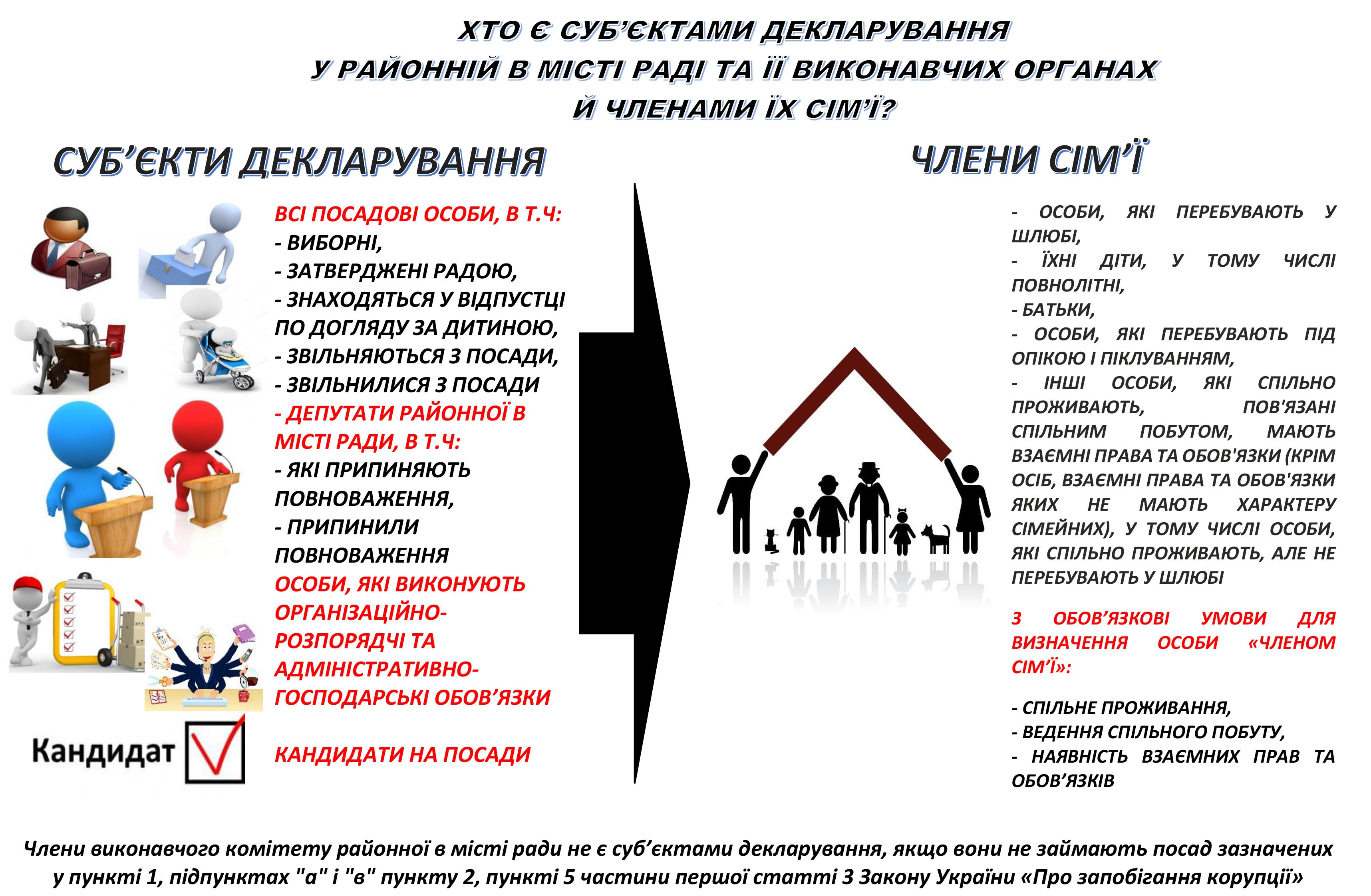 - Хто є суб’єктами декларування у районній в місті раді та її виконавчих органах й членами їх сім’ї?