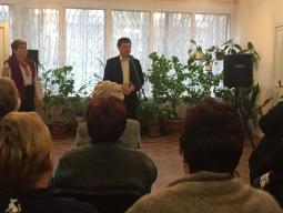 Із побажанням щастя, добра й злагоди, радості без ліку, довгого і щасливого віку виступили: заступник голови районної в місті ради Красножон Ю.Л., президент ліцею Балашов Анатолій та президент фонду «Надія» Зубенко Ольга.