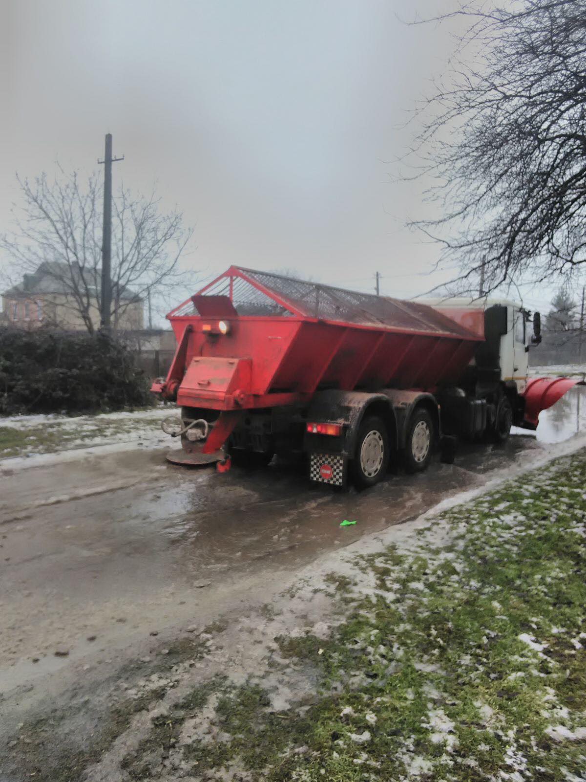 У зв'язку з погіршенням погодних умов (дощ, обмерзання, ожеледиця) на автошляхах району, тротуарах працює важка снігоприбиральна техніка.