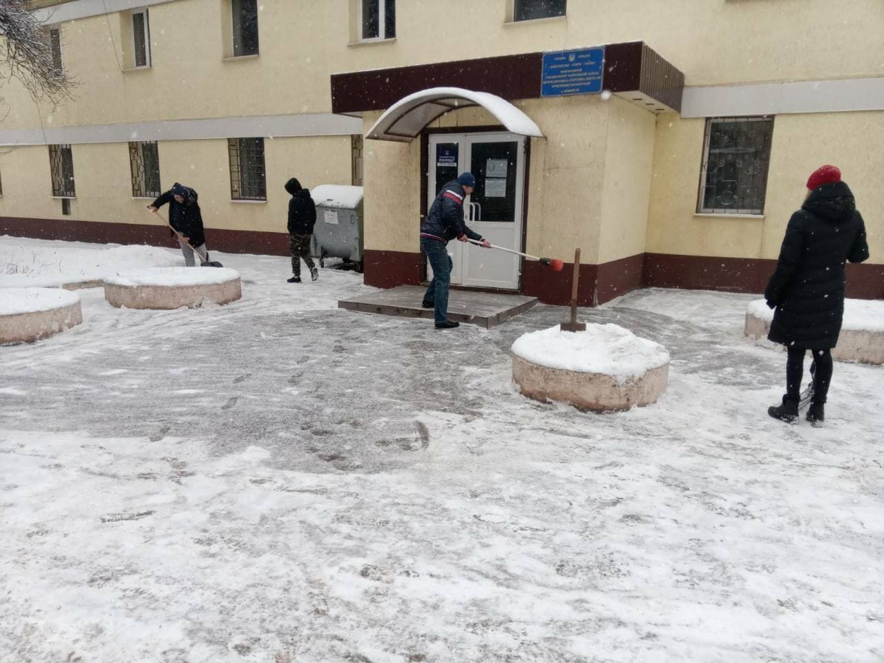 У зв’язку із погіршенням погодних умов, снігопадами та хуртовинами усі установи, організації та підприємства району незалежно від форм власності активно долучилися до прибирання своїх територій від снігу, задля безпеки пересування мешканців.
