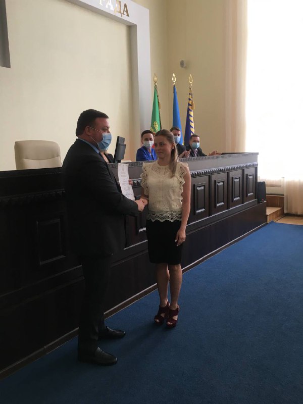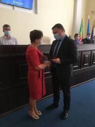 Перед початком засідання голова районної в місті ради Ігор Ратінов нагородив за високий професіоналізм, багаторічну сумлінну працю, активну життєву позицію та з нагоди ювілею нагрудним знаком «За заслуги перед містом» ІІІ ступеня та Вітальним листом Осику Валентину Іванівну, завідувача бібліотеки-філіалу №15 КЗК «Міська бібліотека для дорослих» Криворізької міської ради.