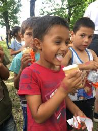 Він побажав дітям весело та цікаво провести час, а солодким подарунком дітям від голови ради було морозиво.
