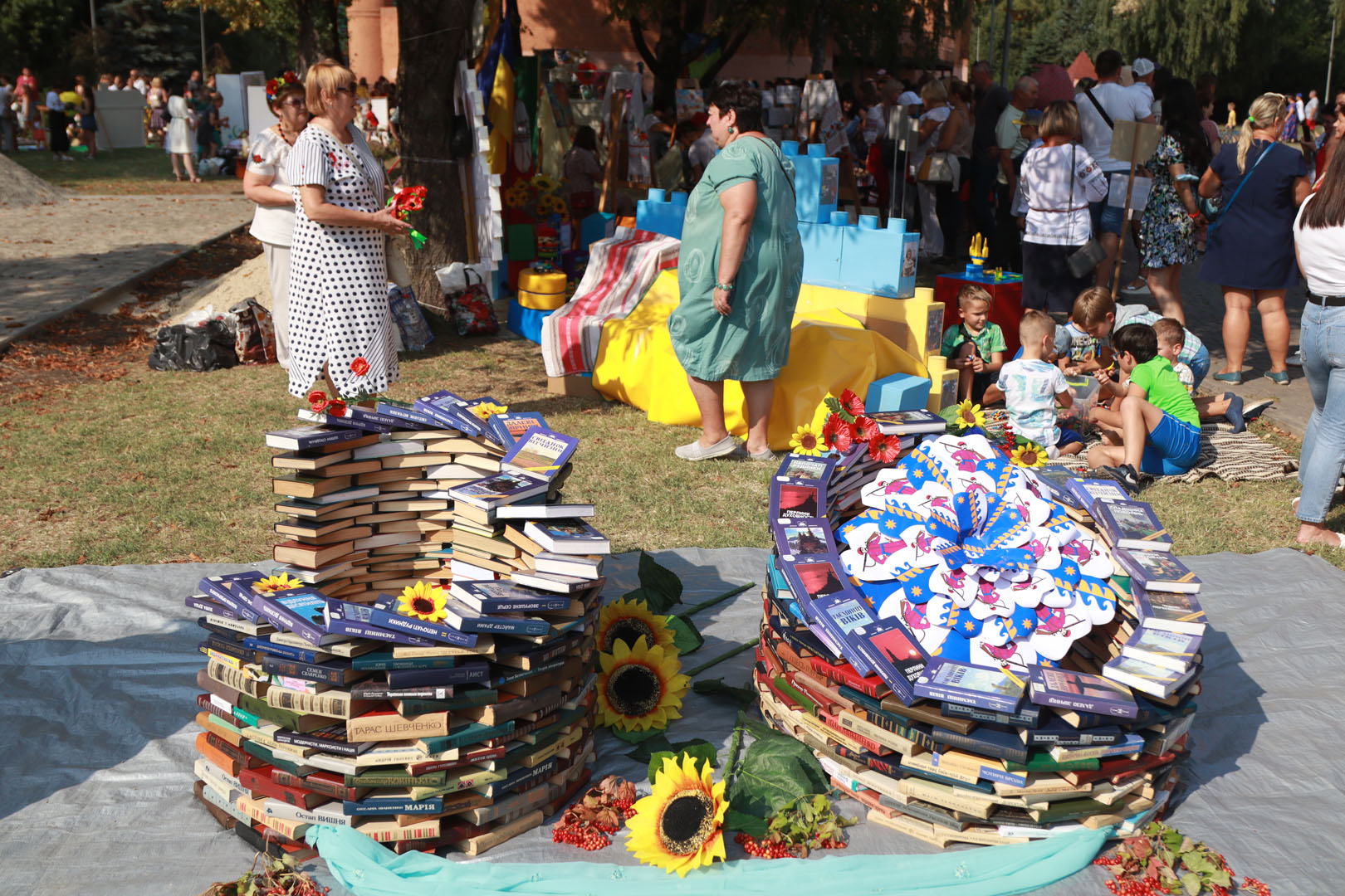 Дуже цікавою та креативною була виставка, підготовлена бібліотеками району, а також стилізована інсталяції з книг у вигляді 30-ки.