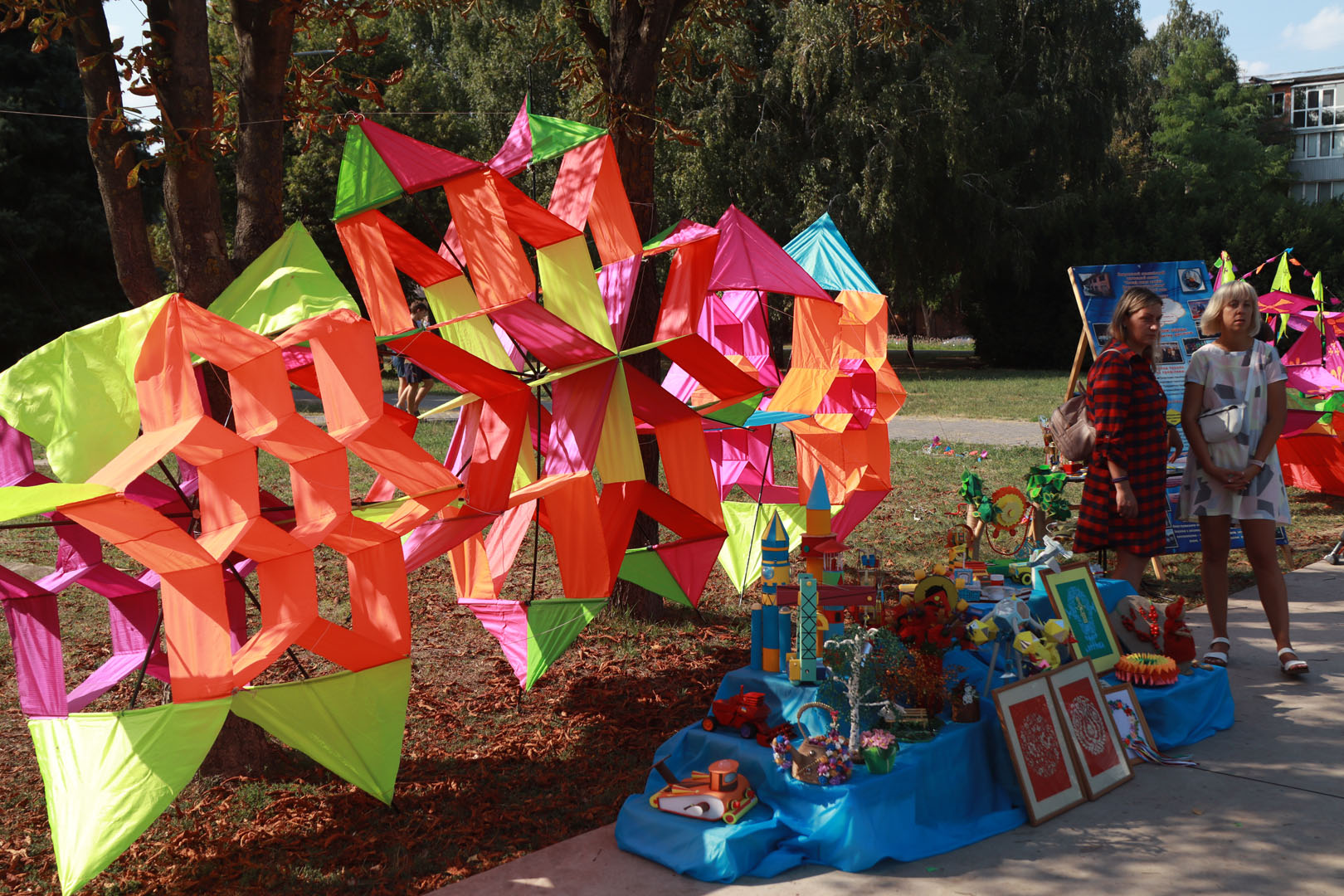 На доріжках скверу розгорнулись локації-виставки, у яких яскраво було відображено тисячолітню історію, побут, традиції нашої держави, підготовлені навчальними закладами району.