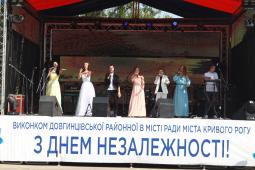 Свято відкрилося яскравою театралізацією «Всім серцем любіть Україну свою, і вічні ми будемо з нею». З привітаннями до жителів району та міста звернувся голова Довгинцівської районної в місті ради Ігор Ратінов. В цей день найкращі представники району отримали міські та районні відзнаки.