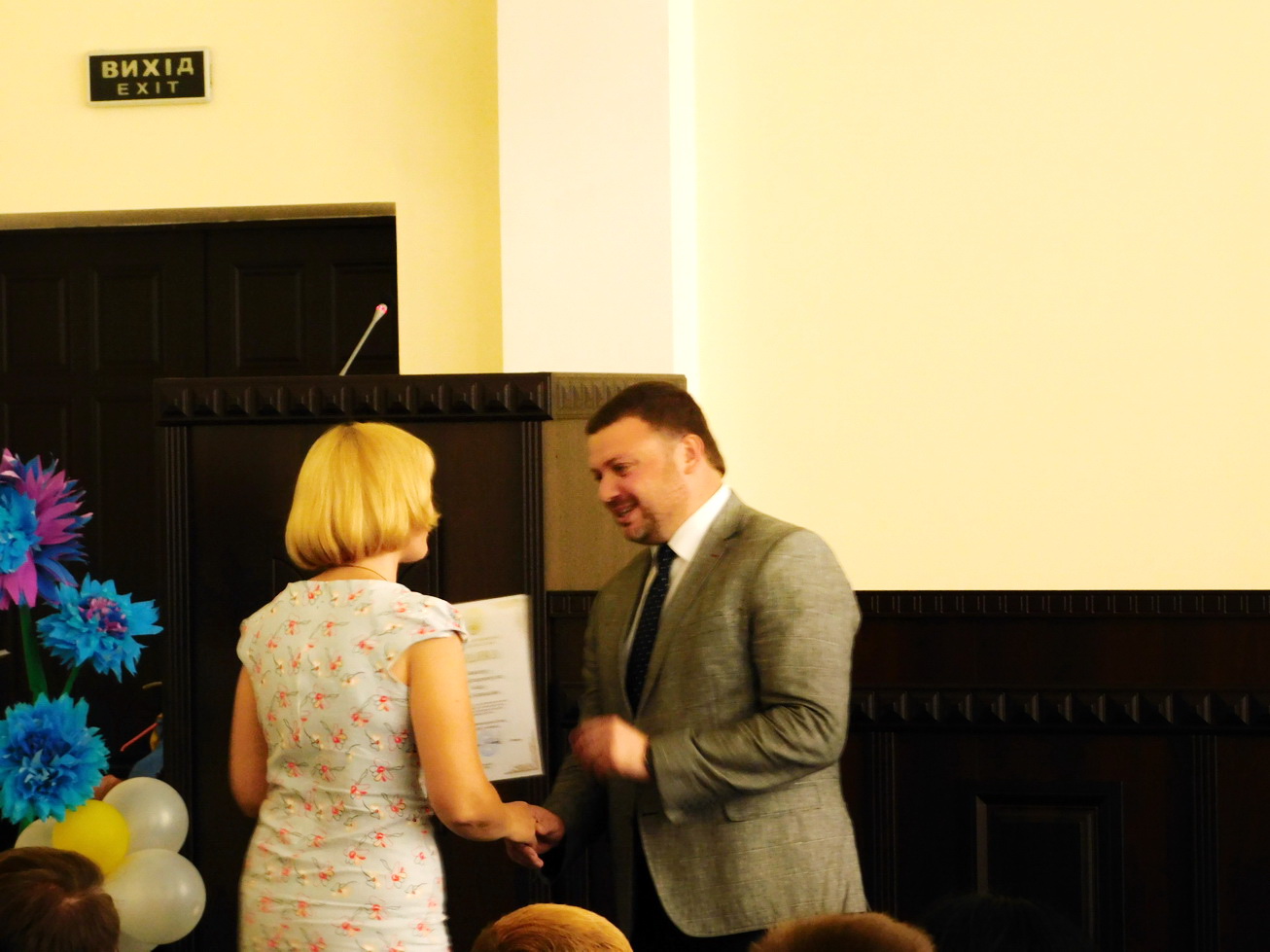 Голова районної в місті ради Ігор Ратінов привітав випускників з отриманням найвищої державної нагороди за навчання – золотих та срібних медалей.