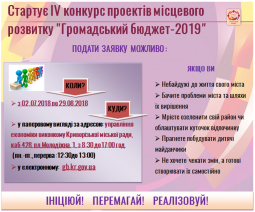 Стартує IV конкурс проектів місцевого розвитку «Громадський бюджет-2019»