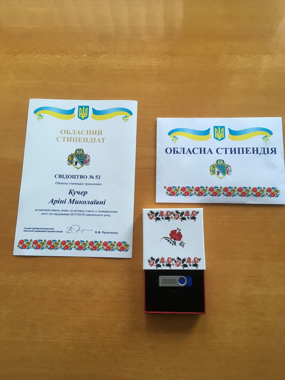 18.07.2018 у Довгинцівському районі відбулася приємна подія – на засіданні виконкому голова Довгинцівської районної в місті ради Ратінов Ігор Гарійович особисто привітав переможницю на отримання стипендії Дніпропетровської обласної державної адміністрації та нагородив свідоцтвом, іменним флеш накоплювачем та грошовою винагородою у розмірі 3000 гривень дитину-сироту, Кучер Аріну Миколаївну, 07.06.2007, ученицю 5-А класу Криворізького навчально-виховного комплексу № 128 «Загальноосвітня школа І-ІІІ ступенів-дошкільний навчальний заклад (дитячий садок)» Криворізької міської ради Дніпропетровської області за високий рівень знань та активну участь у громадському житті за підсумками 2017/2018 навчального року.