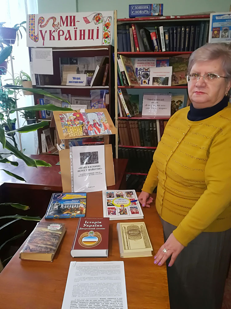 - організовано тематичні виставки художньої та документальної літератури «Соборна незалежна Україна» у шкільних бібліотеках та кабінетах історії;