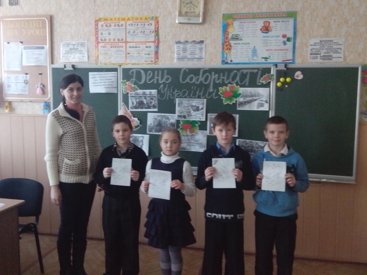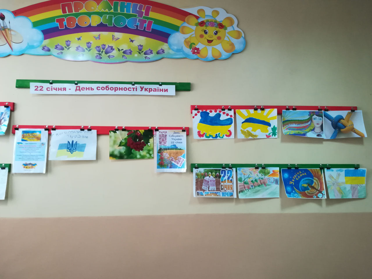 - оформлено тематичні книжкові виставки, виставки творчих робіт «Соборна пам'ять України”; «Нас єднає Україна»;