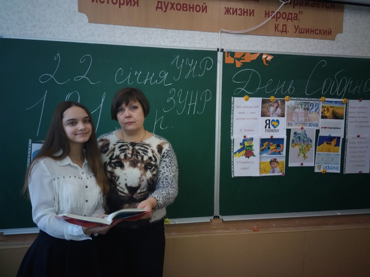 - класні виховні години, тематичні уроки, диспути на тему: «Я – патріот своєї країни»; «Шлях до Незалежності»; «Час історичного вибору: ключові події Української революції 1917 – 1921 років»; «Соборна мати Україна одна для всіх, як оберіг»; «Україна – соборна держава»; «День Соборності України – символ національного єднання українського народу»; «Великий день єднання»; «Соборність України: історичний шлях до єднання українських земель»;
