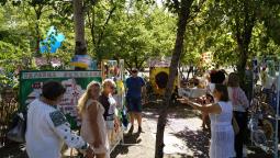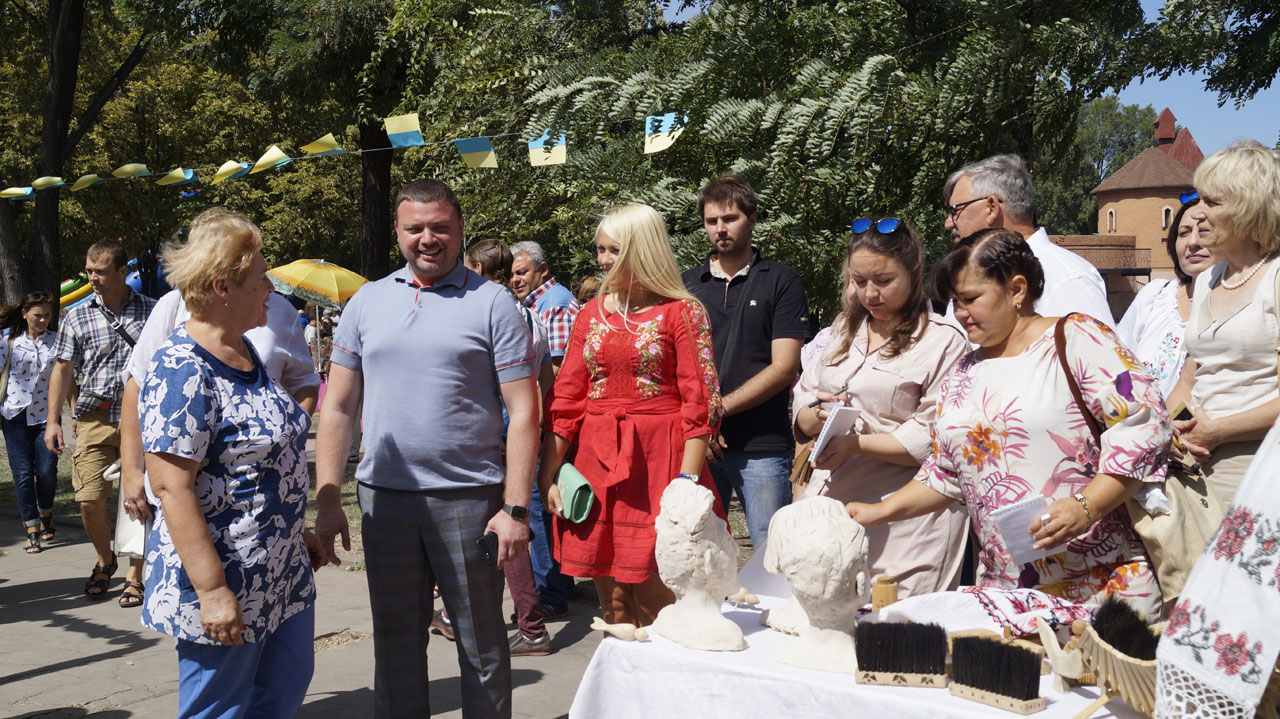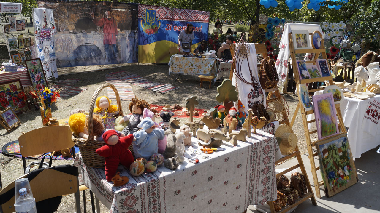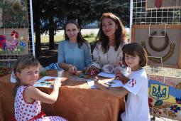 Майстрині народних промислів проводили майстер-класи з бісероплетіння, вишивки, орігамі, боді-арту, виготовлення ляльки-мотанки, поряд було запропоновано до реалізації сувеніри, доробки з національною символікою.