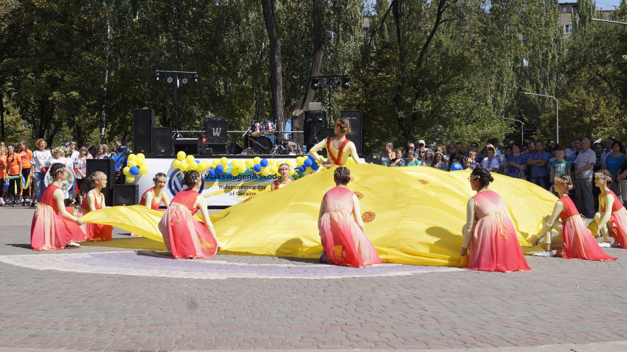 Свято відкрилося театралізацією «Живи та міцній на радість, на славу, наша юна, рідна державо!», виступом міського муніципального оркестру та виступом кращих дитячих художніх колективів району. З привітаннями до жителів району та міста звернулися голова Довгинцівської районної в місті ради Ратінов Ігор Гарійович та заступник міського голови Подоплєлова Надія Леонідівна. В цей день найкращі представники району отримали нагородження.