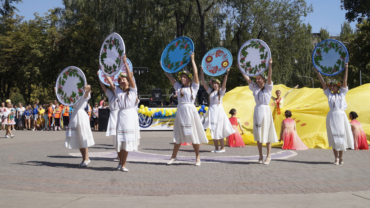 На доріжках скверу розгорнулись презентації-виставки «Країна землеробів», «Країна ремісників», «Козацька країна», «Мистецька Україна», у яких яскраво було відображено тисячолітню історію, побут, традиції нашої держави, підготовлені загальноосвітніми навчальними закладами району.