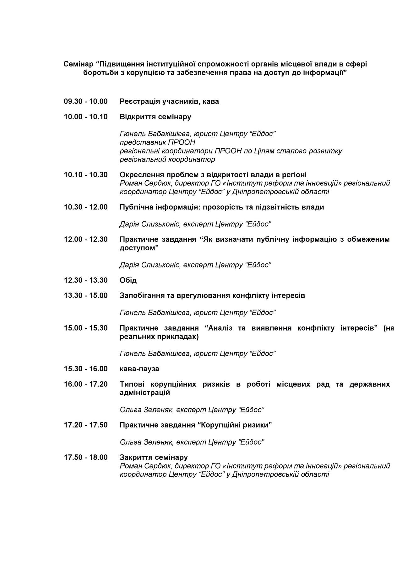 Центр «Ейдос» запрошує депутатів місцевих рад взяти участь у семінарі «Підвищення інституційної спроможності органів місцевої влади в сфері боротьби з корупцією та забезпечення права на доступ до інформації», який відбудеться 02 жовтня 2018 року в готелі «Reikartz» за адресою: вул.Троїцька, 12 А, м. Дніпро.