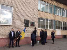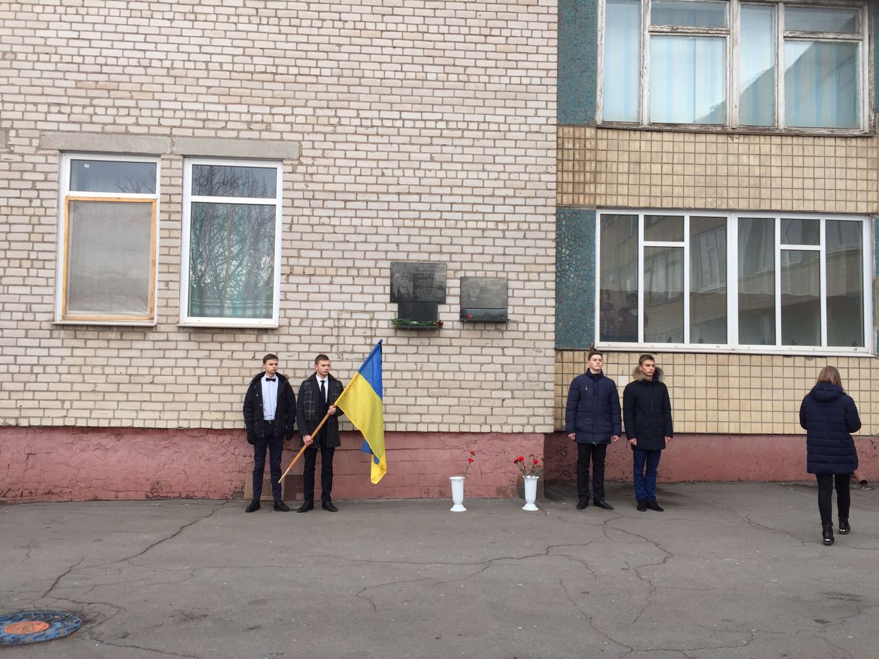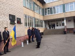 Склонивши голови, присутні поклали квіти до меморіальної дошки загиблого воїна.