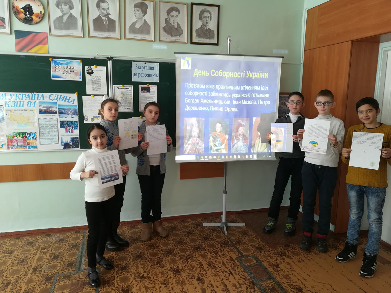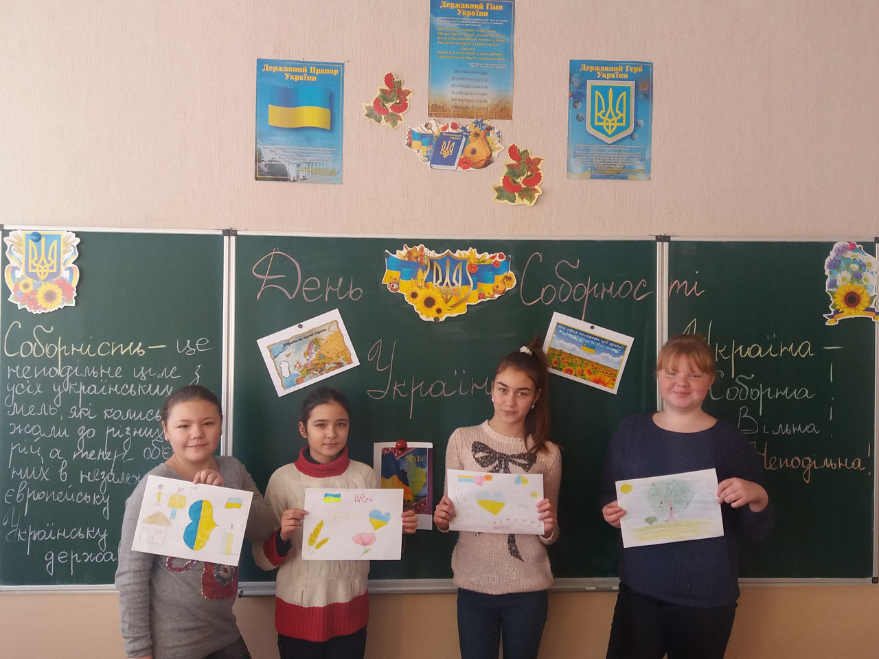 - проведено класні виховні години, тематичні уроки на теми: «Співаєм славу тій події і тепер», «Соборна мати Україна – одна на всіх як оберіг», «Навіки єдина Україна», «Одна єдина Соборна Україна!», «Великий день єднання», «Україна моя квітуча»;