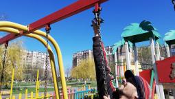 Дитячий майданчик у зеленій зоні між будинками 17, 33 по вулиці Незалежності України та будинком 27 по вулиці В'ячеслава Чорновола (сквер ім. Гутовського):
