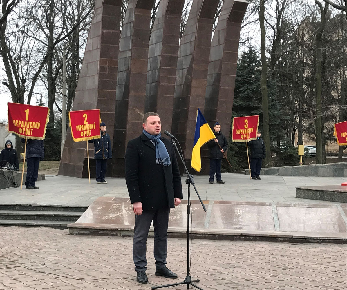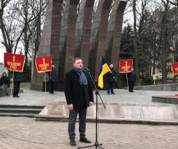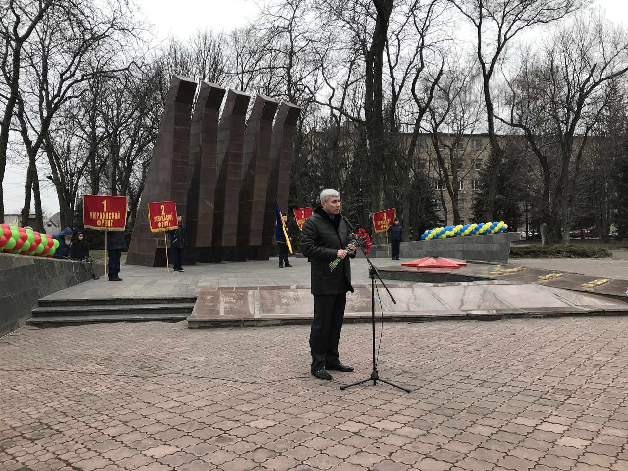 У Парку Залізничників о 10.00 відбувся районний мітинг та урочисте покладання квітів до братської могили підпільників та радянських воїнів.
