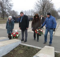 В цей урочистий день за участю ветеранів війни та голови районної в місті ради Ратінова І.Г. о 09.00 пройшло покладання квітів до братської могили радянських воїнів по вул. Мальовничій.