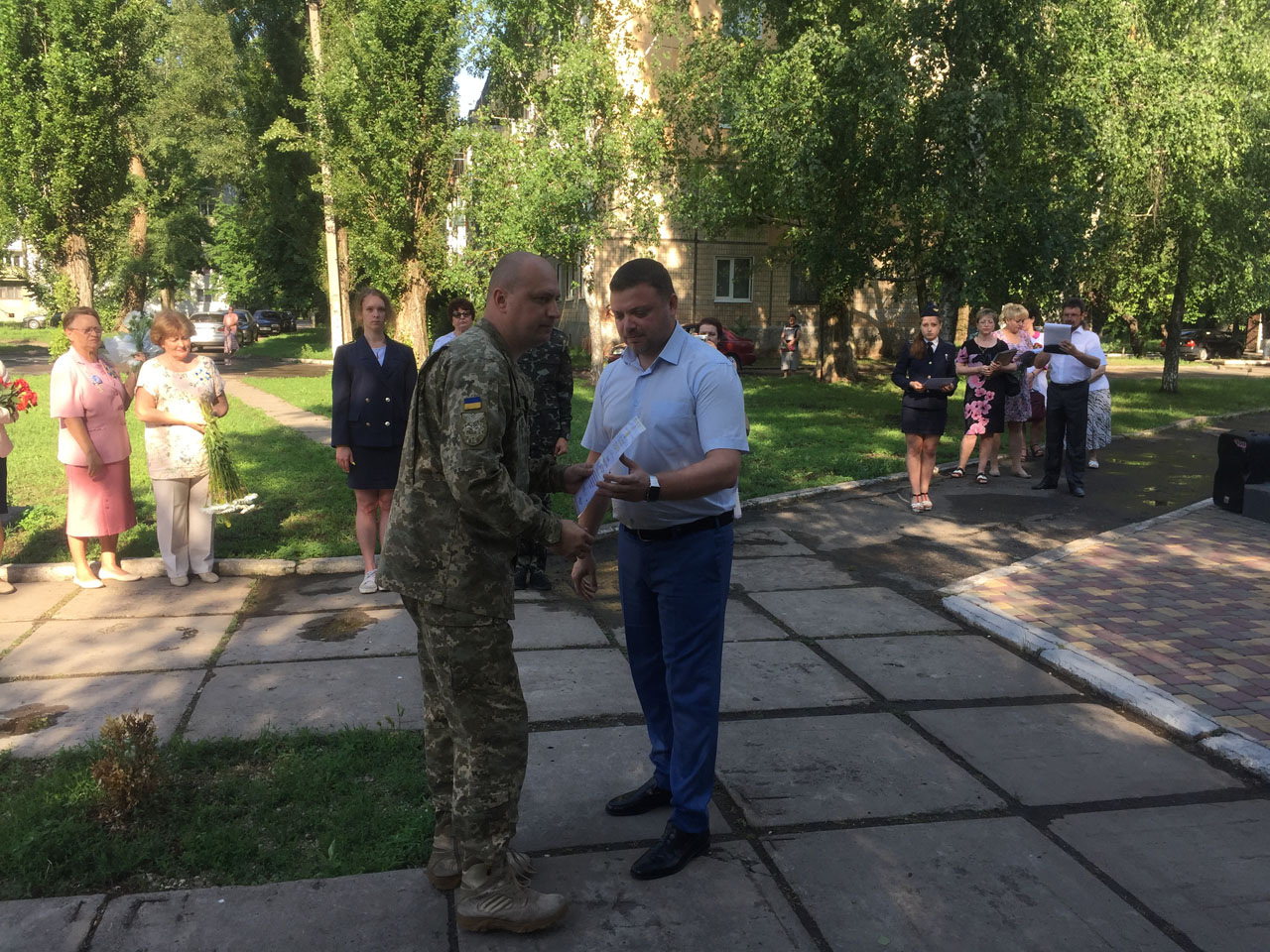 Голова Довгинцівської районної в місті ради Ратінов Ігор Гарійович наголосив на визначальній ролі наших військових, які від перших днів подій на Сході України стали на захист своєї Батьківщини. На жаль, чимало з них – ціною власного життя. Пам’ять про кожного з них назавжди лишиться у серцях батьків, рідних, близьких знайомих та закарбується в історії рідного району, міста та держави в цілому.