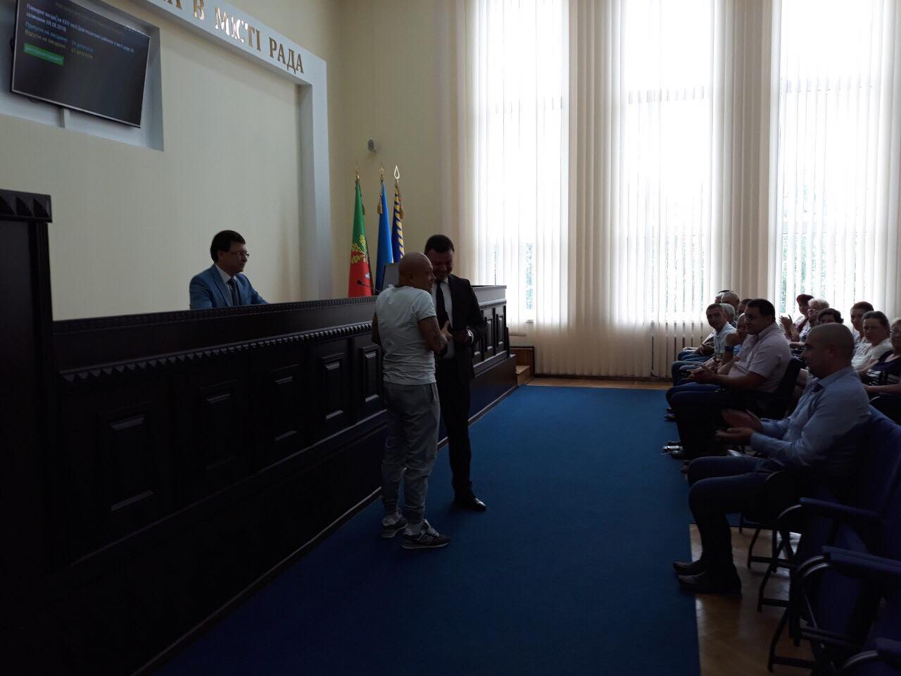 Перед відкриттям пленарного засідання голова ради Ігор Ратінов вручив за особисту мужність і героїзм, проявлені при виконанні військового обов’язку під час участі в антитерористичній операції на сході України учаснику бойових дій, капітану Збройних Сил України Олегу Трофимчуку нагрудний знак «Гордість Довгинцівського району» та Грамоту виконкому районної в місті ради учаснику бойових дій, депутату Довгинцівської районної в місті ради Вадиму Поляниці.