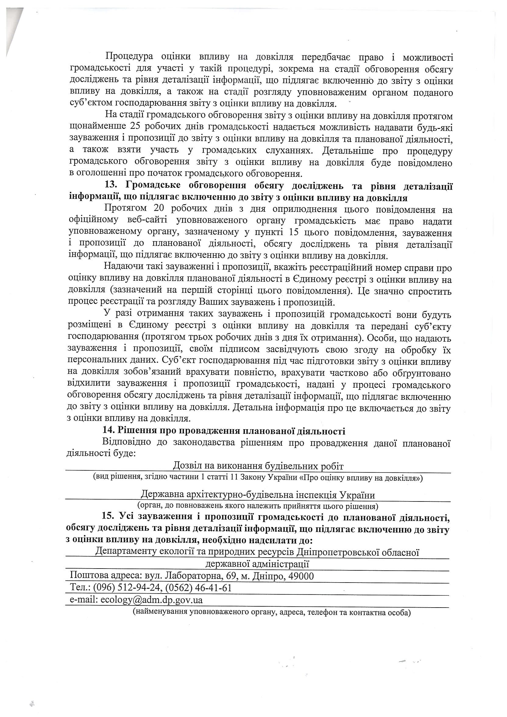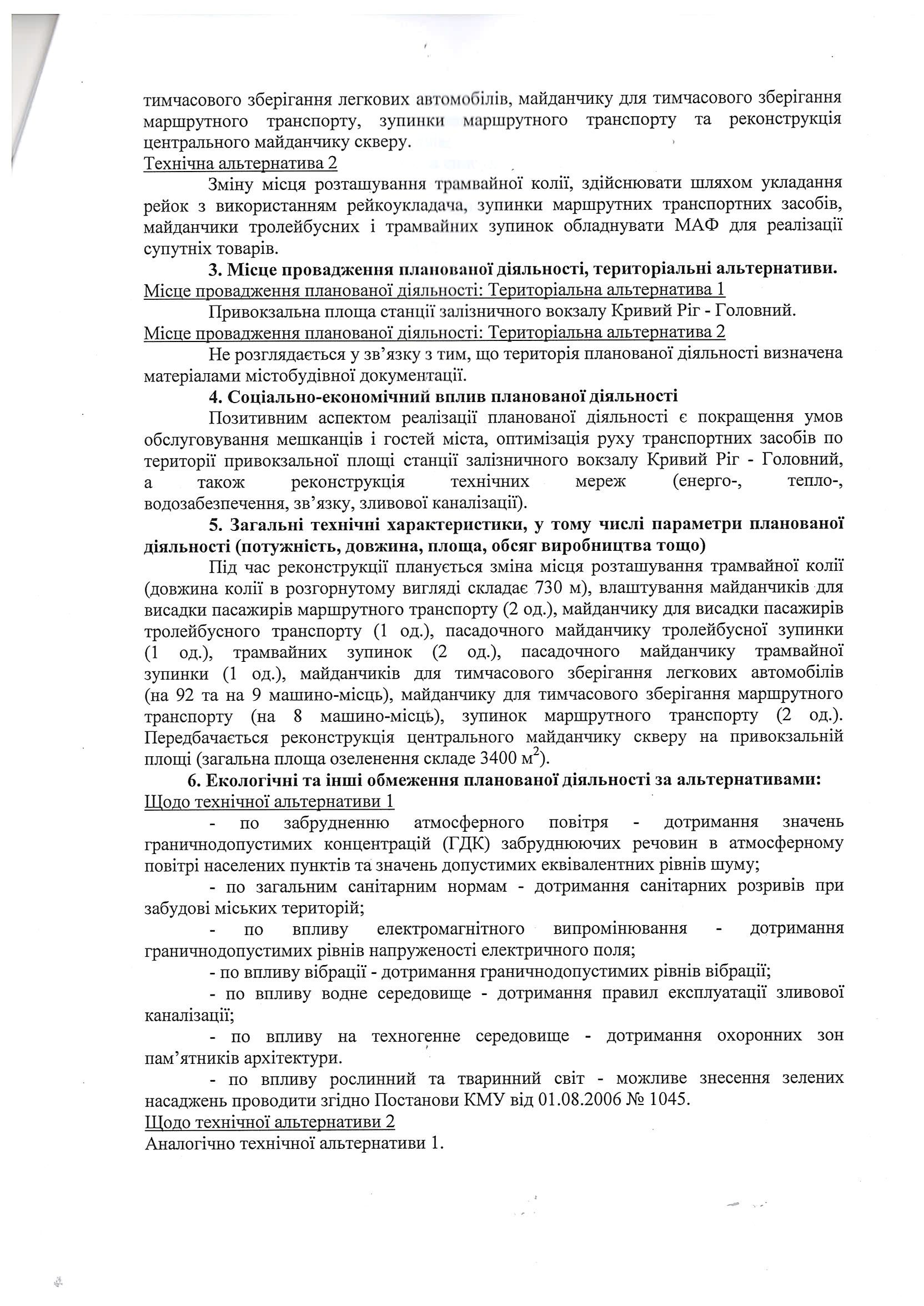 Повідомлення про планову діяльність щодо реконструкції привокзальної площі станції залізничного вокзалу Кривий Ріг-Головний