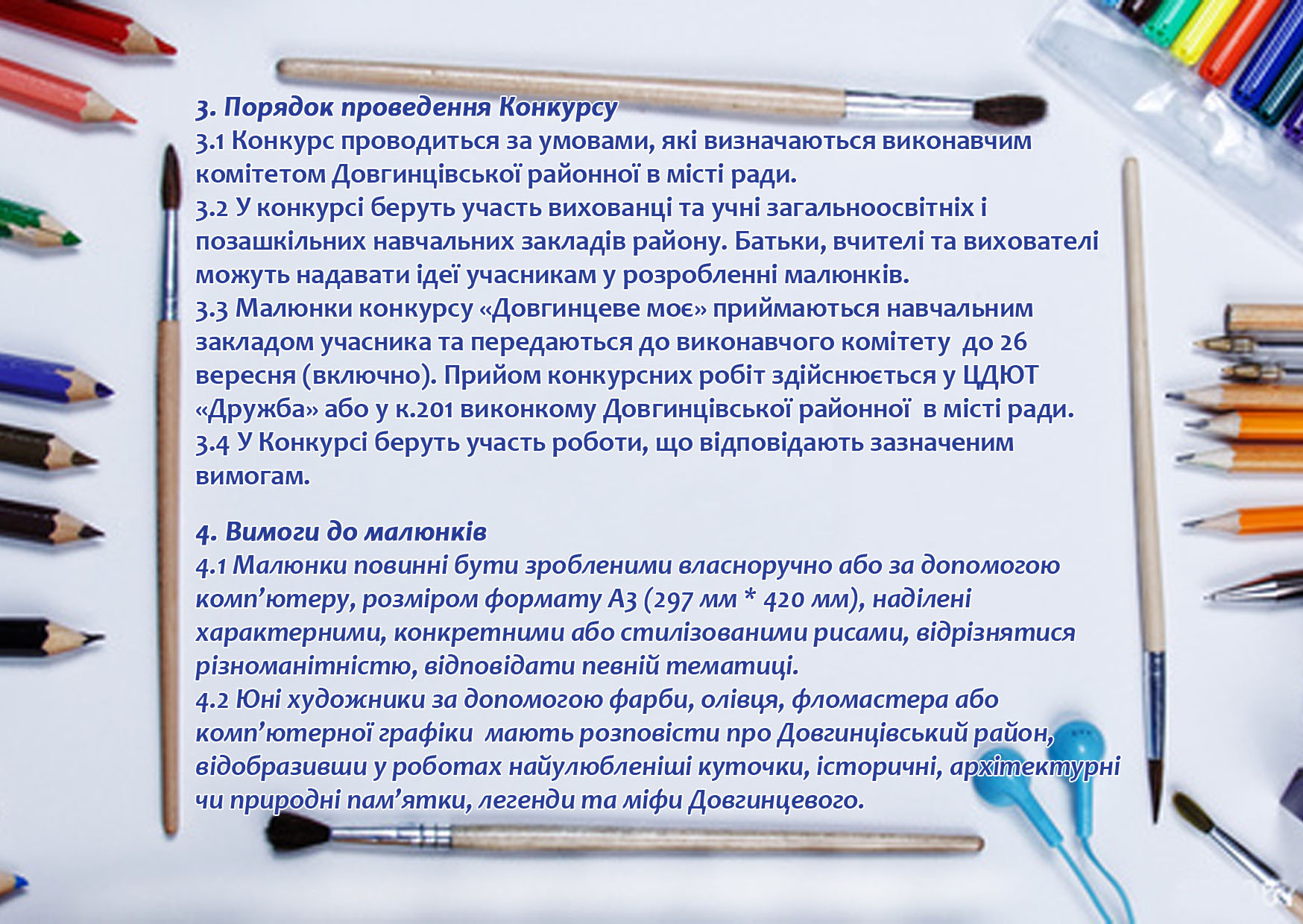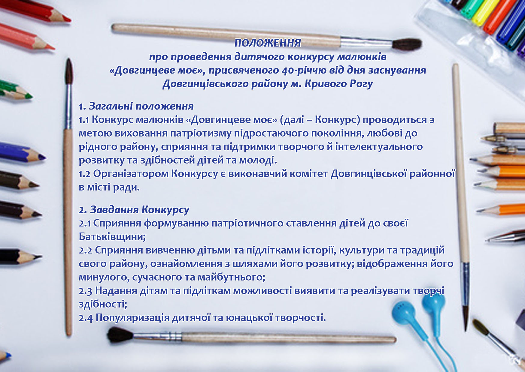 Положення про проведення дитячого конкурсу малюнків «Довгинцеве моє», присвяченого 40-річчю від дня заснування Довгинцівського району м. Кривого Рогу