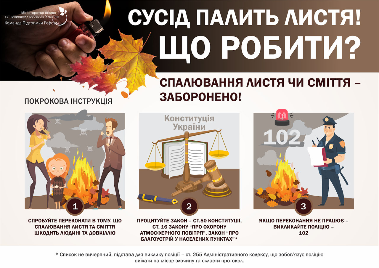 Коли Ви бачите спалювання сухої трави, листя чи сміття – НЕ МОВЧІТЬ!