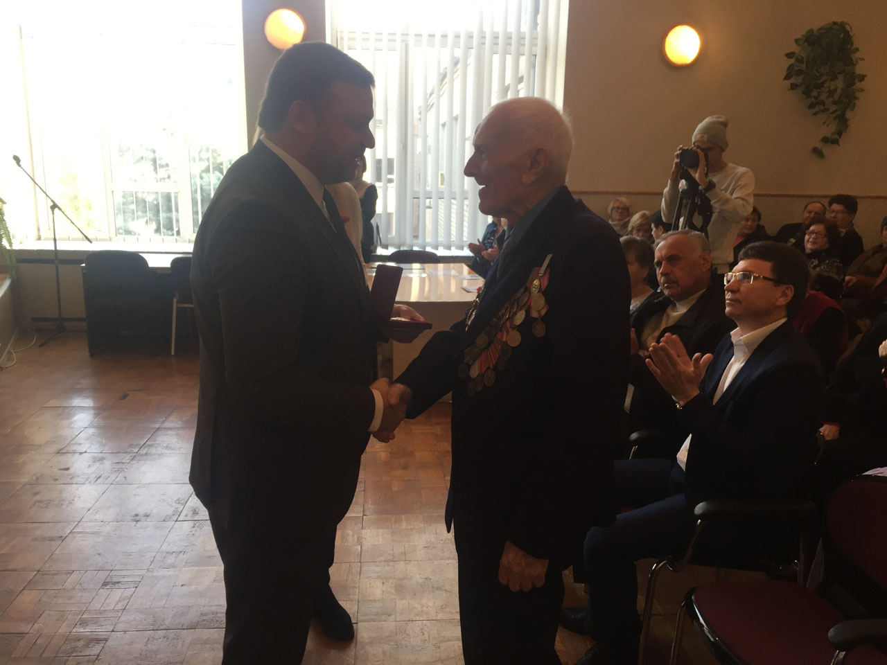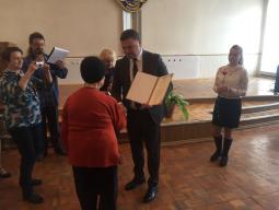 Вітаючи ветеранів війни та праці голова Довгинцівської районної в місті ради від щирого серця побажав всім міцного здоров'я та довгих років життя. За значний трудовий внесок у розвиток міста і району, активну громадську позицію, розвиток ветеранського руху 30 найкращих представників району отримали відзнаки обласної, міської та районної у місті рад, а також районної організації ветеранів.