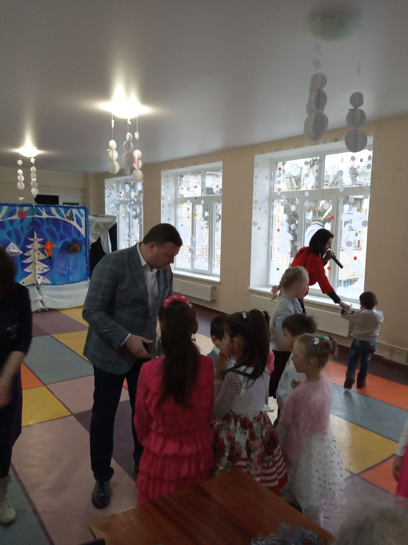 Голова Довгинцівської районної в місті ради, Ратінов Ігор Гарійович поздоровив присутніх з Новорічними святами, вручив солодкі подарунки та побажав дітям та їх батькам всього найкращого у наступаючому 2020 році.