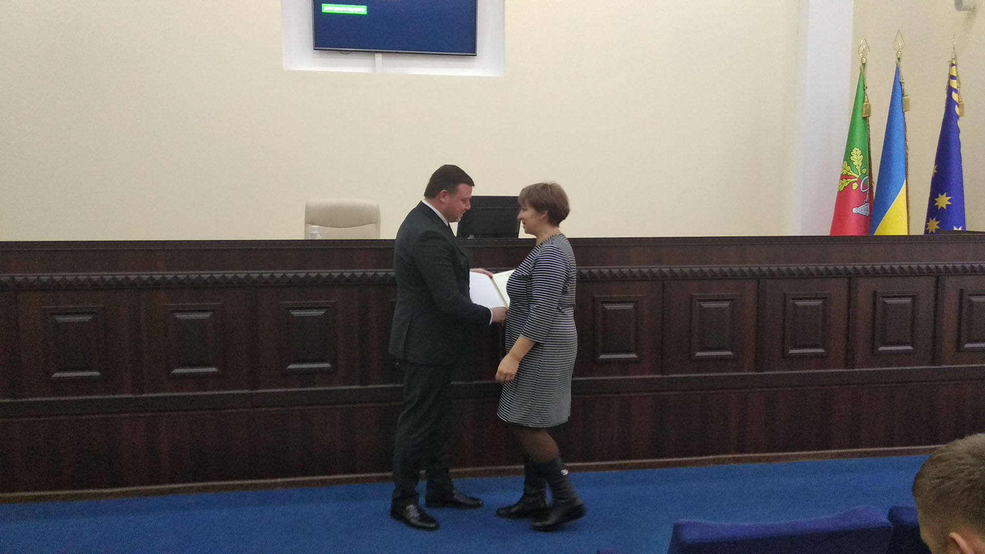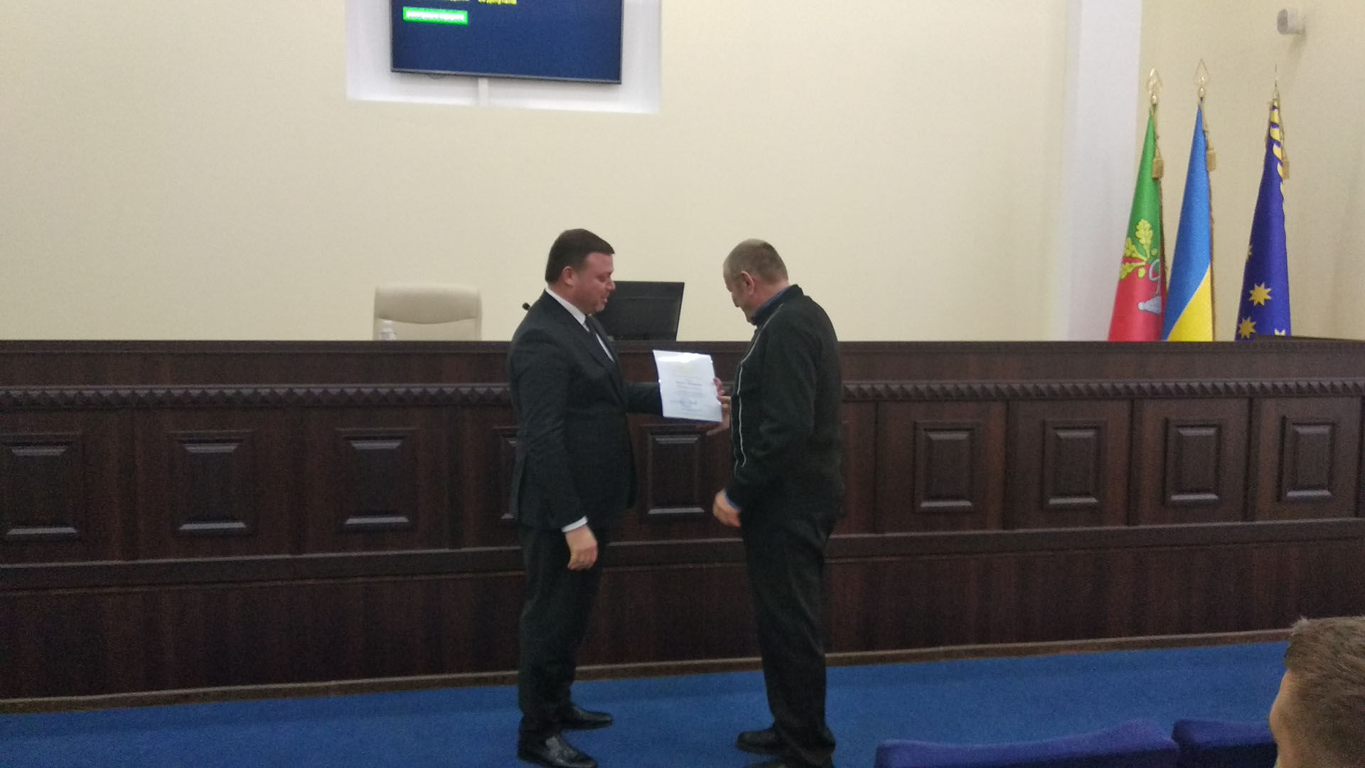 Перед відкриттям пленарного засідання голова ради І.Ратінов вручив працівникам комунального підприємства «Міський тролейбус» відзнаки виконкому Криворізької міської ради з нагоди Дня енергетика.