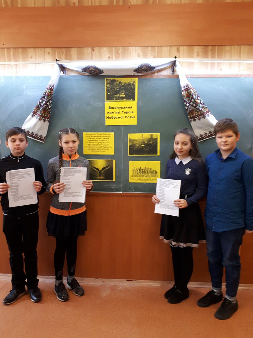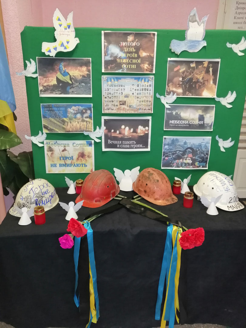 - єдині виховні години, єдині уроки пам’яті, класні виховні години, тематичні уроки, на теми: «У їхніх серцях жила Україна…», «Чисті душі, що злетіли в небо», «Хто за свободу вийшов проти смерті, тому не має забуття», «Щоб у піснях лишатись назавжди і Україну славою вінчати!», година «Вони помирали, щоб жила Україна», «Горіли і шини, і душі», «Збережемо пам'ять про подвиг», «Вони живуть у наших серцях…»;