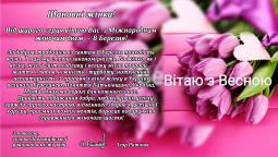 Шановні жінки! Від щирого серця вітаю Вас з Міжнародним жіночим днем – 8 Березня!