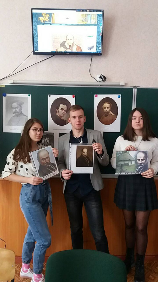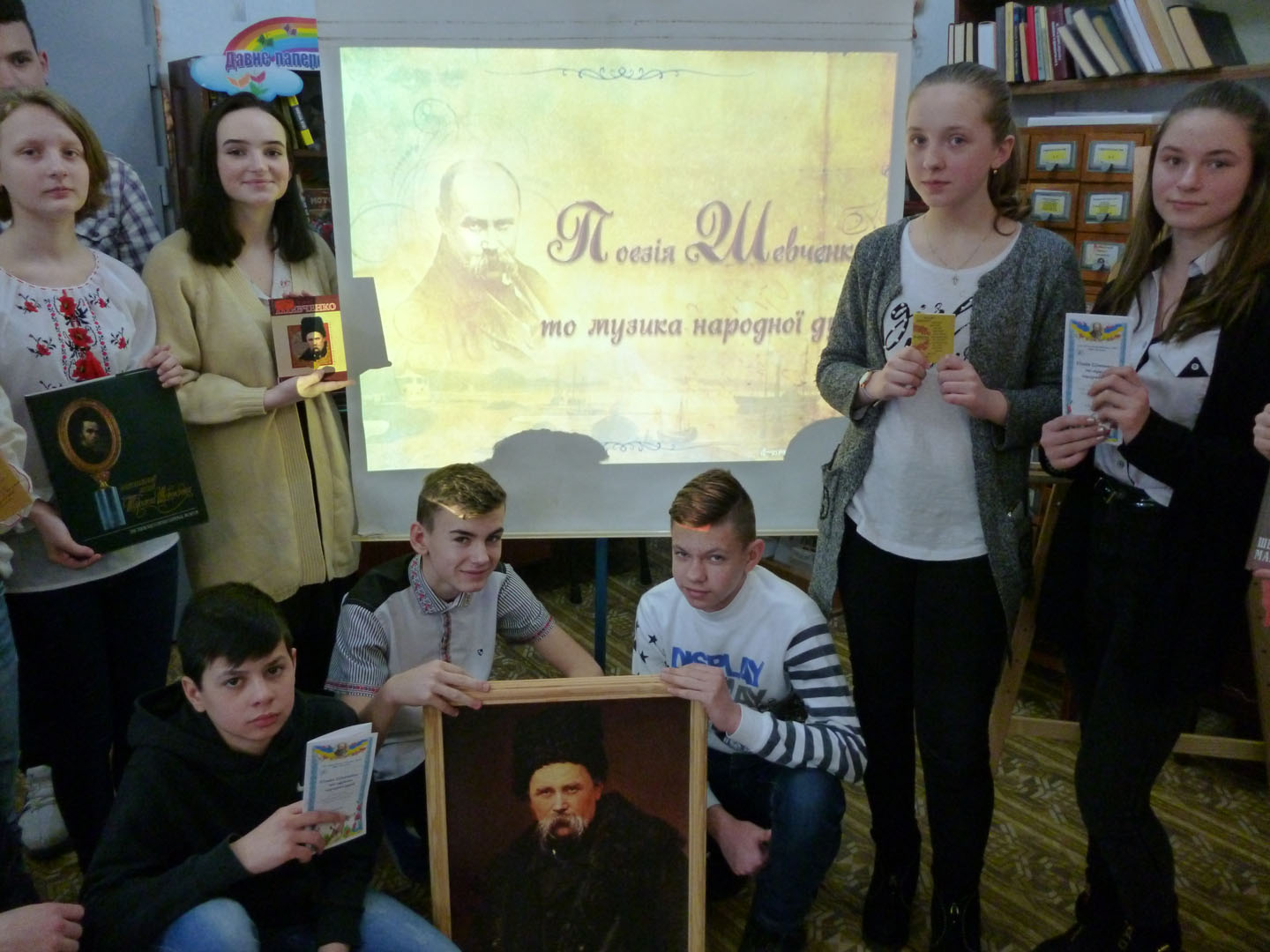 Проведено виховні години, години спілкування. Учні приймали участь у вікторинах, виставках ілюстрацій до творів Т.Шевченка, квестах юних філологів «Пізнаємо Кобзаря» (присвячений життю і творчості Т.Шевченка), у мовному тюнинзі «А я пишу рідною так…», меседжі «Золоте серце української – батьківської й материнської…», шоу-грі «Я знаю Шевченка», круглому столі «Шевченко з нами», конкурсі на кращу учнівську презентацію «Тернистий шлях Кобзаря», також було проведено екскурсії в музей етнографії з інтерв’юванням вчителів.