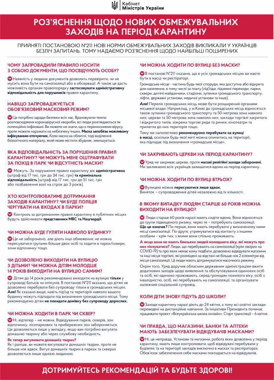 Роз’яснення щодо нових обмежувальних заходів на період карантину