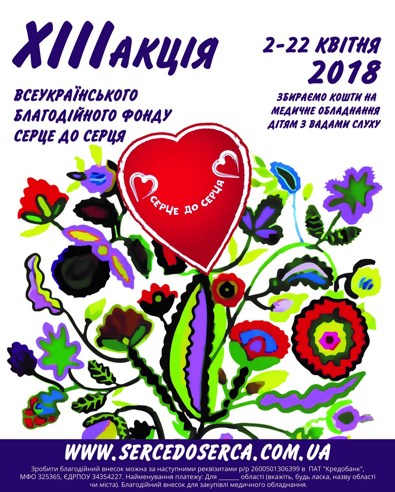 З 2 по 22 квітня 2018 року проходитиме ХІІІ Всеукраїнська благодійна акція Всеукраїнського благодійного фонду «Серце до серця» - «Почуй світ!»