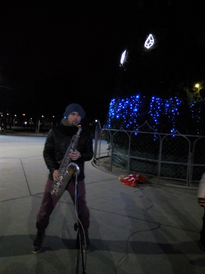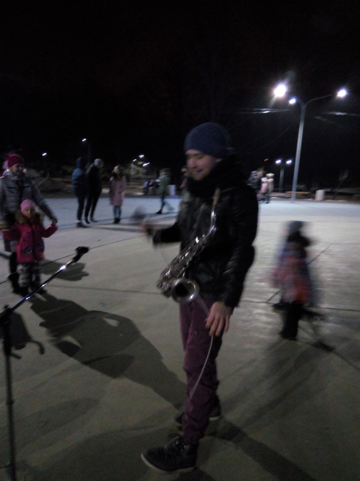 Ініціативна та творча молодь району подарувала присутнім цікаву, змістовну інформаційну хвилинку «Що рік Півня нам готує?», святкові забави «Час на колядку», гру-вікторину «Зимова круговерть», мандрівну гру «А у нас на Новий рік!». Неповторною, креативною у репертуарі саксофоніста була джазова композиція, у якій музикант продемонстував увесь спектр своїх музичних можливостей. Молодь веселилась та перейнялась святковим настроєм.