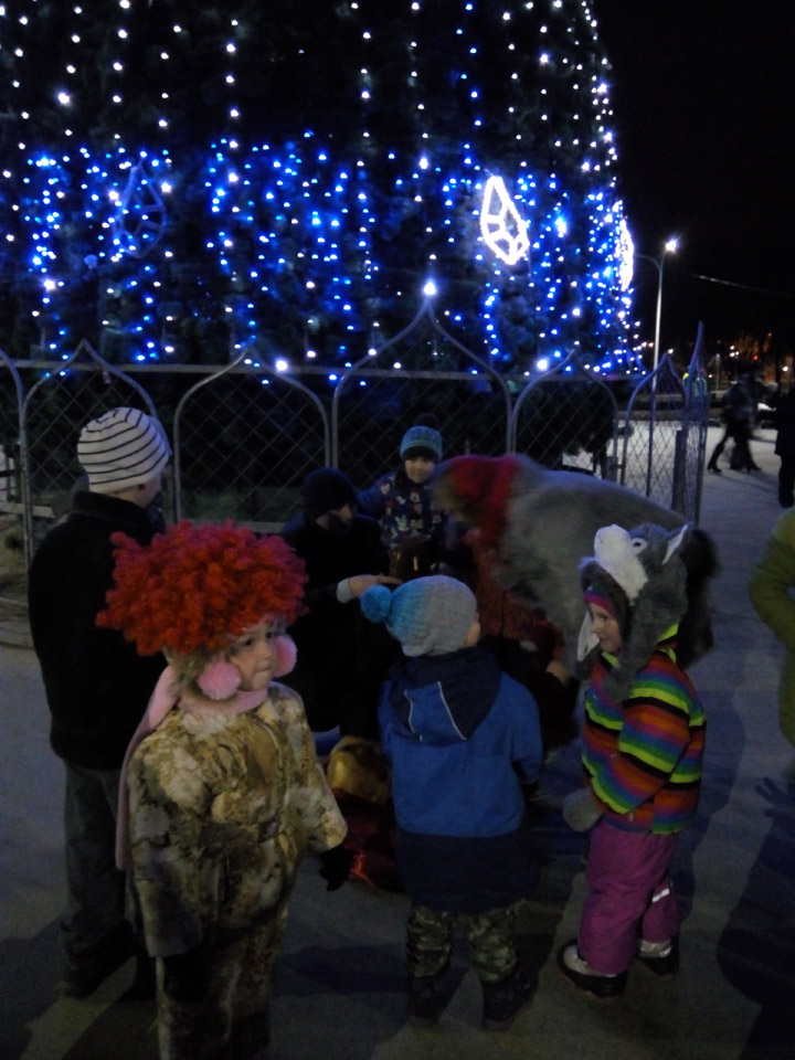 Не залишилася поза увагою і малеча. Новорічні побажання вона отримувала від улюблених костюмованих персонажів.