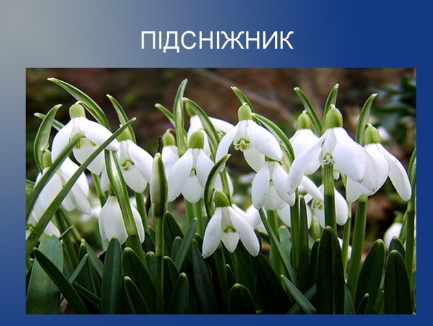 1. Підсніжник – найпопулярніша рослина, є два види – підсніжник складчастий та сніжно-білий. Починають цвісти з кінця грудня і до середини березня.