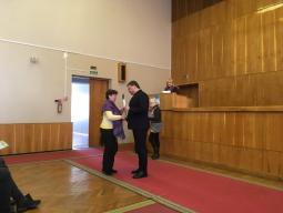 З привітаннями та словами подяки до присутніх звернувся голова Довгинцівської районної в місті ради Ігор Гарійович Ратінов. За якісну організацію, допомогу, підготовку та проведення масових районних новорічно-різдвяних заходів, збереження і розвиток національних традицій, свят та обрядів, високий рівень організації та проведення зимових канікул, участь у міських новорічних заходах та конкурсах, залучення дітей і молоді до відродження та збереження історичних, культурних, духовних традицій та обрядів українського народу 49 подяк виконкому районної ради отримали: підприємства та організації району, депутати обласної та районної ради, фізичні особи-підприємці, колективи дошкільних, загальноосвітніх та позашкільних навчальних закладів.