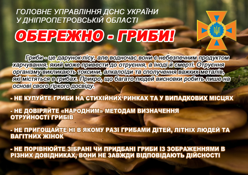 Експрес-інформація Головного управління ДСНС України у Дніпропетровській області щодо попередження отруєння населення дикорослими грибами
