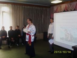 Привітати учнів прийшли також старійшина Інгульської паланки війська Запорізького низового Лісняк Павло Петрович та об’єднання гуртків «Козацька країна» філії «Ровесник» Центру дитячої та юнацької творчості «Гармонія». Вони презентували номер «Бойовий гопак».